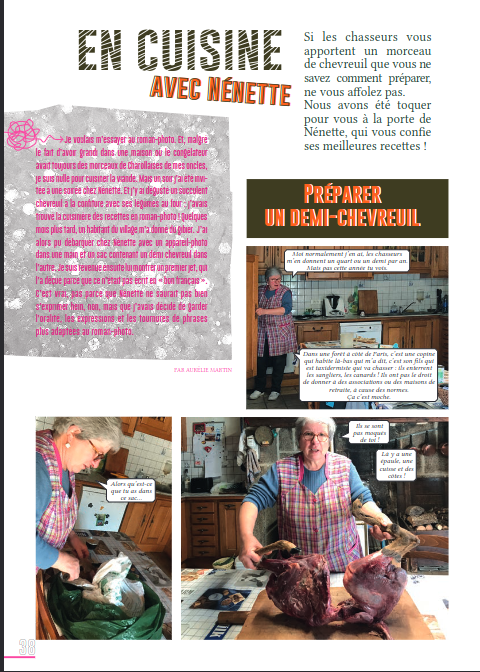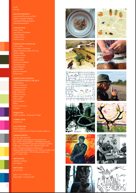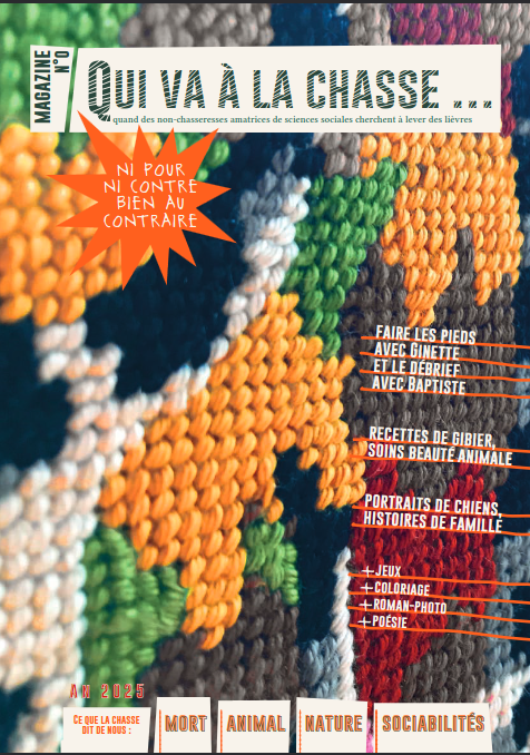 C’est une REVUE avec des PORTRAITS de CHIEN, un QUIZZ, des RECETTES de gibier, un coloriage, des HISTOIRES de chasse… Une revue pour avoir un sérieux prétexte pour prendre nos rêves pour la réalité : s’entreCROISER, s’entreMELER, s’entre-ENTENDRE, s’entre-PARLER pour éviter de s’entre-TUER.